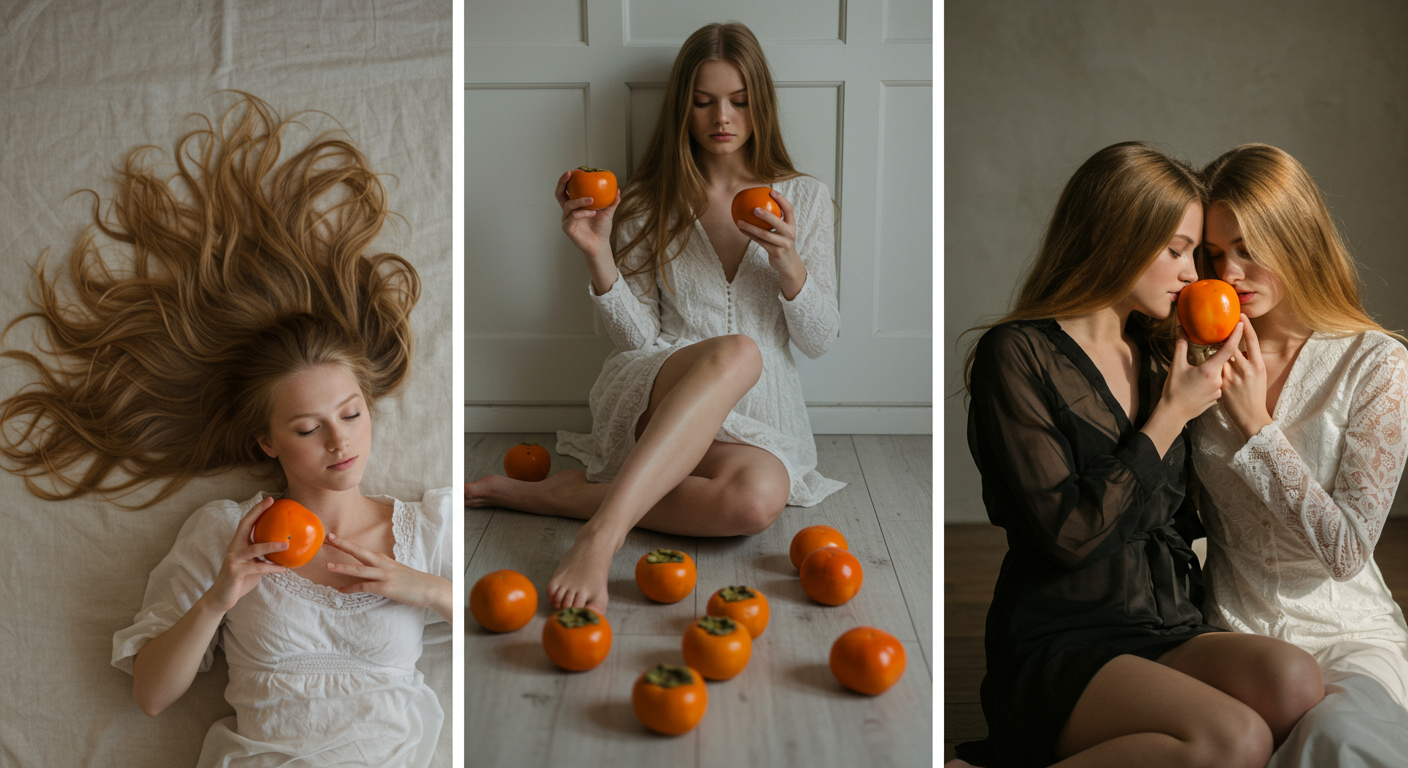 For this editorial, I was inspired by Hoshigaki, which is the Japanese way of slow drying persimmons. It takes nearly two months time, but, by the end, their small bodies shrivel up into sweet, prismatic confectionery. Due to the laborious nature of this process, but also its aesthetic charm, I consider them an aesthetic metaphor to represent the beauty of patience.