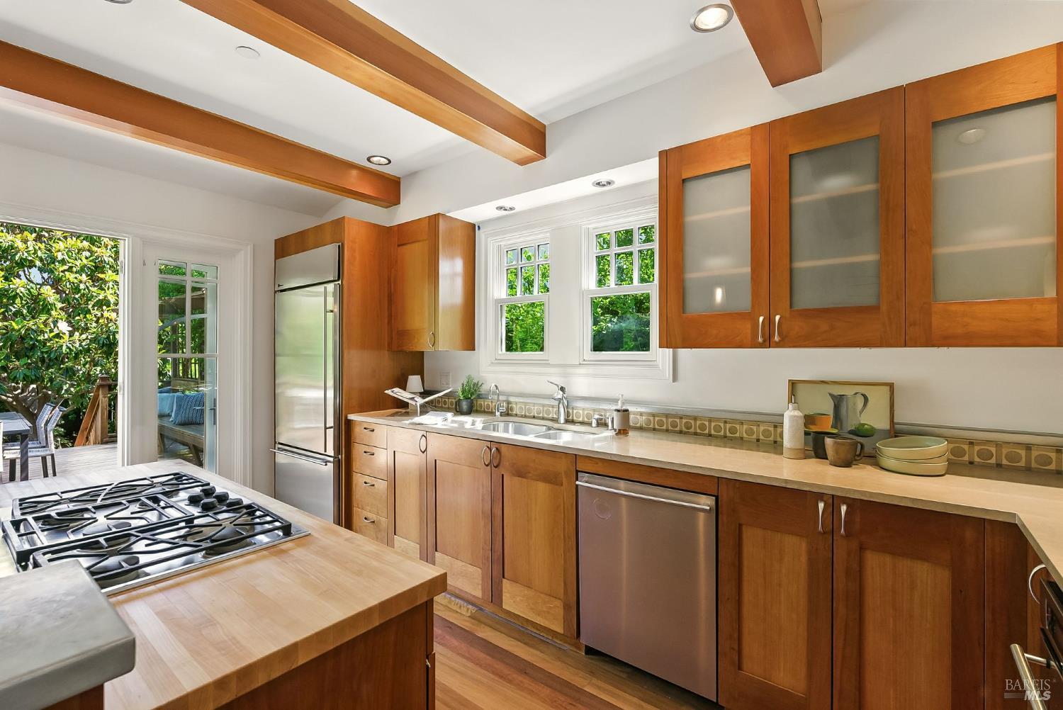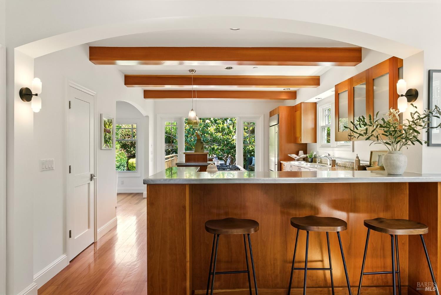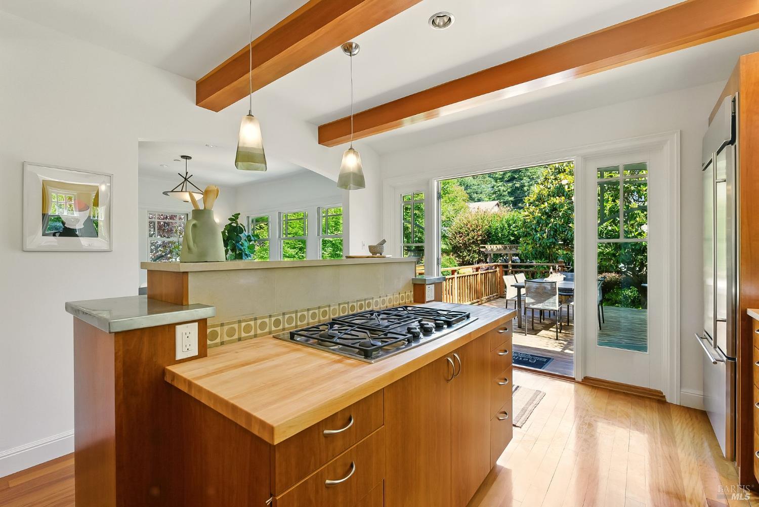 Welcome to 119 Sunnyside Avenue, an exquisitely rebuilt Craftsman on one of Mill Valley's most beloved streets, where gardens bloom and neighbors linger. This timeless three-bedroom, three-bath home blends classic California design with bespoke modern updates. A gated brick porch with artisan-paned windows opens to a formal living space with a handcrafted fireplace and sunlit bay window. The heart of the home is the custom kitchen with wood cabinetry, zinc countertops, center island, breakfast bar, and French doors leading to a sunny deck and lush garden. A spacious dining room, guest bedroom, and full bath complete the main level. Upstairs, the vaulted-ceiling primary suite features a spa-like bath, walk-in closet, built-ins,and lovely vistas. The lower level includes a flexible family room, office space, full bath, guest room with radiant heat, and a well-appointed mudroom with laundry, deep sink, wine room, and access to a custom dog run. The landscaped backyard features terraced patios, level lawn, and serene privacy. Thoughtfully restored with high-end materials and classic Craftsman detail, 119 Sunnyside is a soulful place to live the Mill Valley dream.