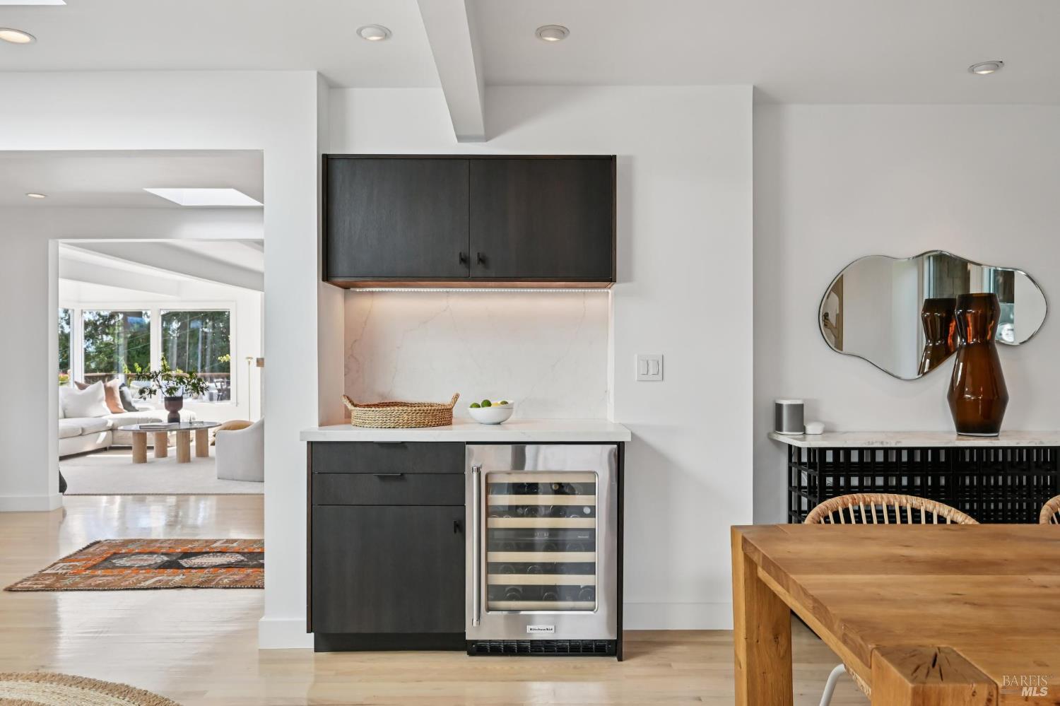 Welcome to 129 Morning Sun, where modern finishes, unobstructed views, and convenient California living meet. Excellent floor plan, filled with natural light from banks of windows. A great room flows to a sunny deck with expansive panoramas. Inside, smooth finish walls, oak hardwood floors, and designer details set a refined tone. The chef's kitchen features an expansive island, upscale appliances including an induction cooktop, and a built-in coffee cabinet. A flexible office (optional 4th bedroom) sits just off the living room for work-life flow. Outdoors, enjoy multiple flat areas ... a large lawn, bocce court, redwood hot tub, and kids' zone. A one car garage and gate to Rising Road provide a path to Tam High. Good weather, quick SF commute, and local favorites like Hook Fish, Equator, the Junction, and Shoreline Coffee Shop are just beyond your doorstep.