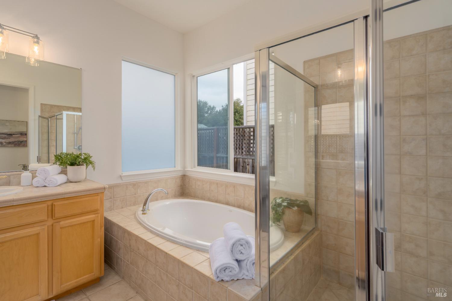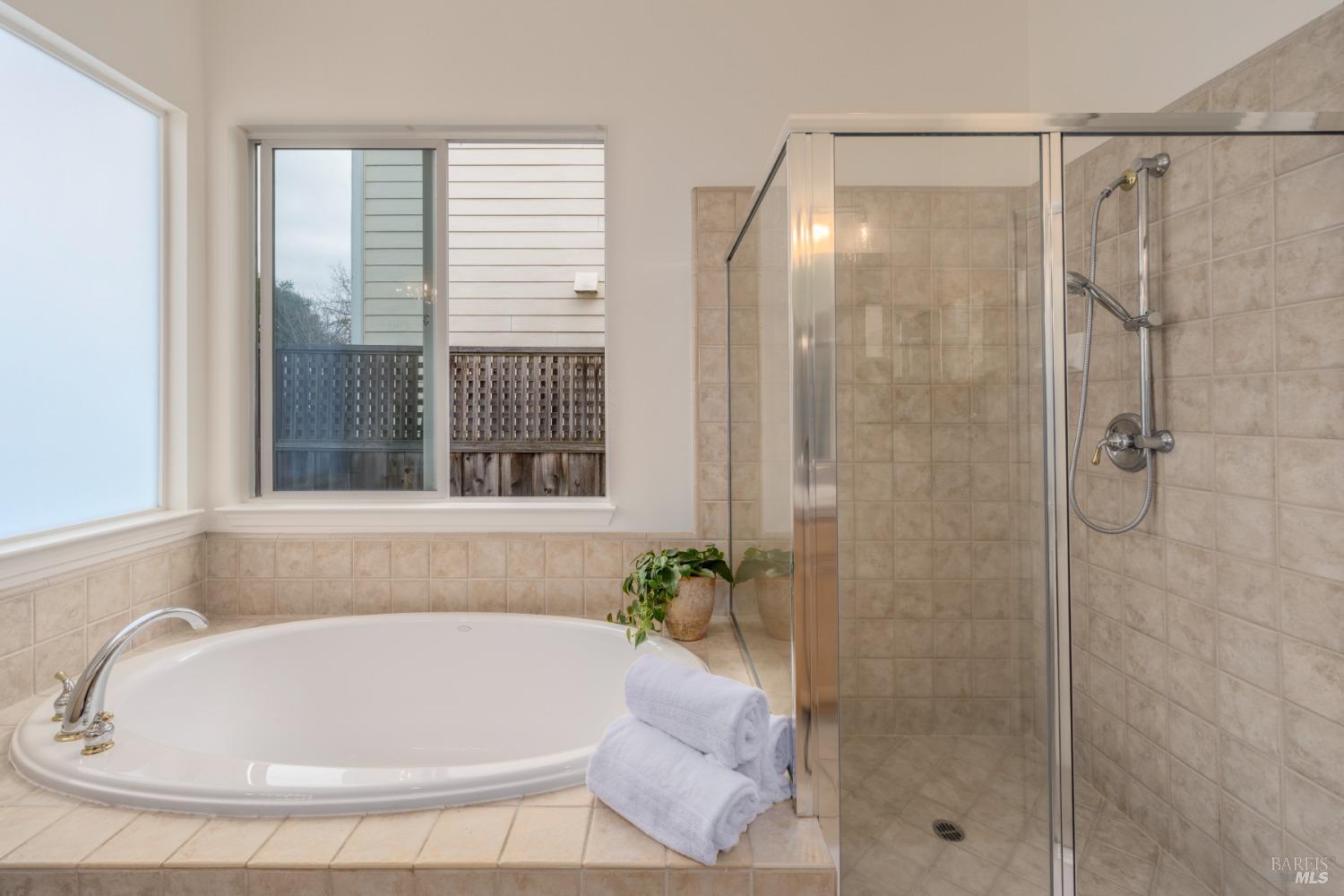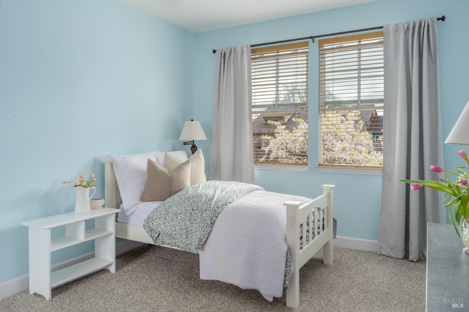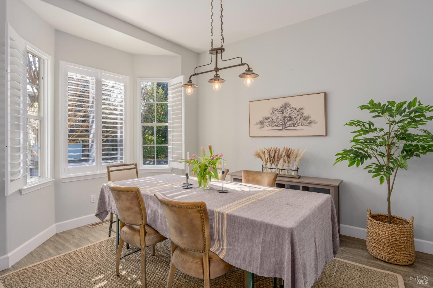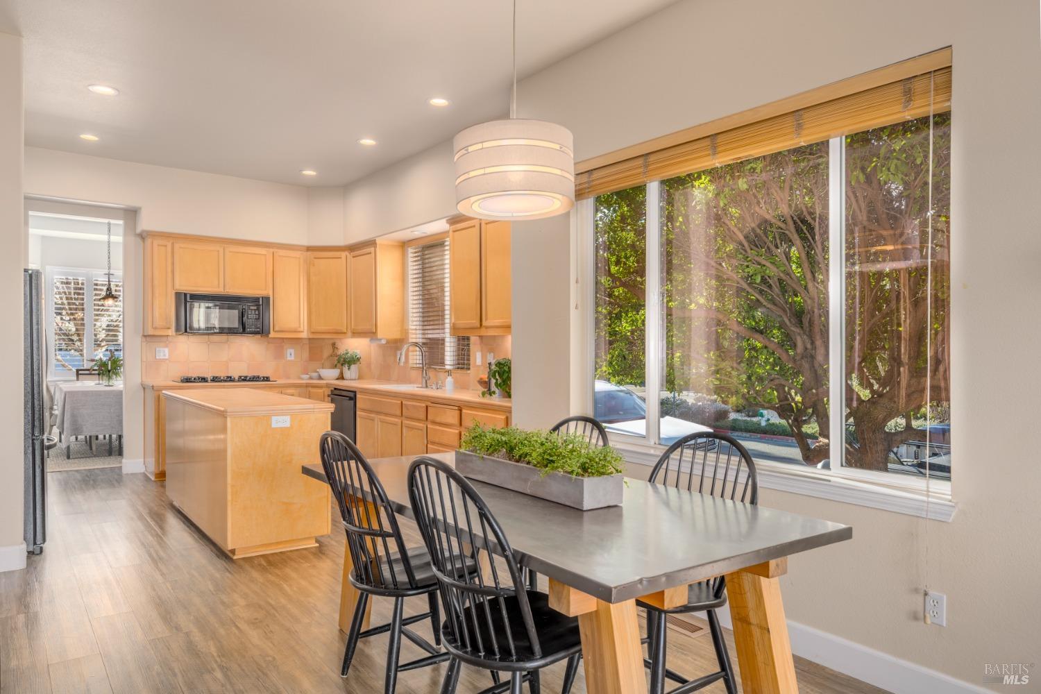 Located in the heart of Sonoma, this 4 bedroom, 2.5 bath home offers 2,575 sq ft of living space on a spacious corner lot. The inviting covered front porch leads into an open floor plan with high ceilings throughout and abundant natural light. Adjacent to the formal dining room, the kitchen features a large island, accessing the informal dining room and the second living room space. French doors open to the backyard with a cozy fireplace anchoring the family room. The main-level primary suite offers backyard access, an en-suite bath with a soaking tub and large, walk-in closet. Upstairs, three additional bedrooms provide space for guests, a home office, or flex use. Located within a block of the bike path, this home offers convenience and prime location in one of Sonoma's favorite neighborhoods.