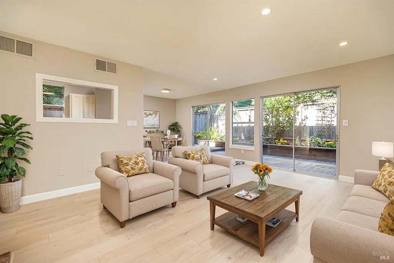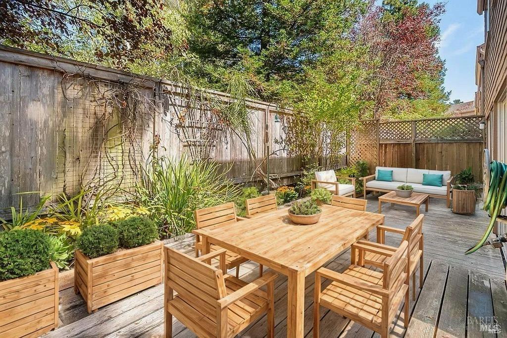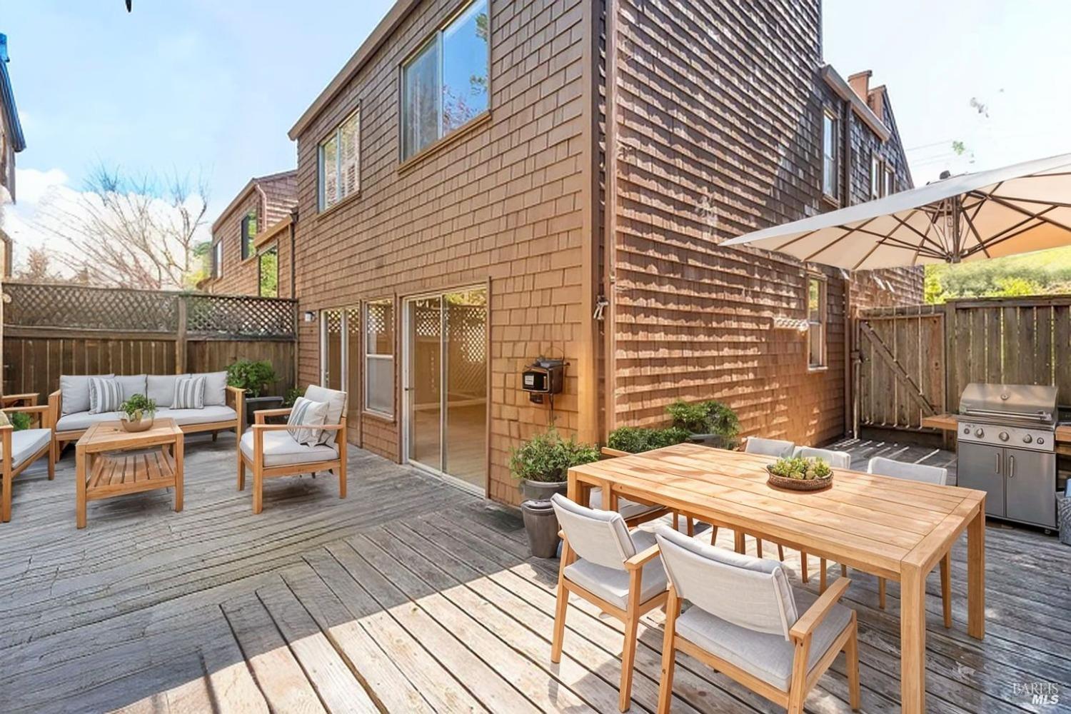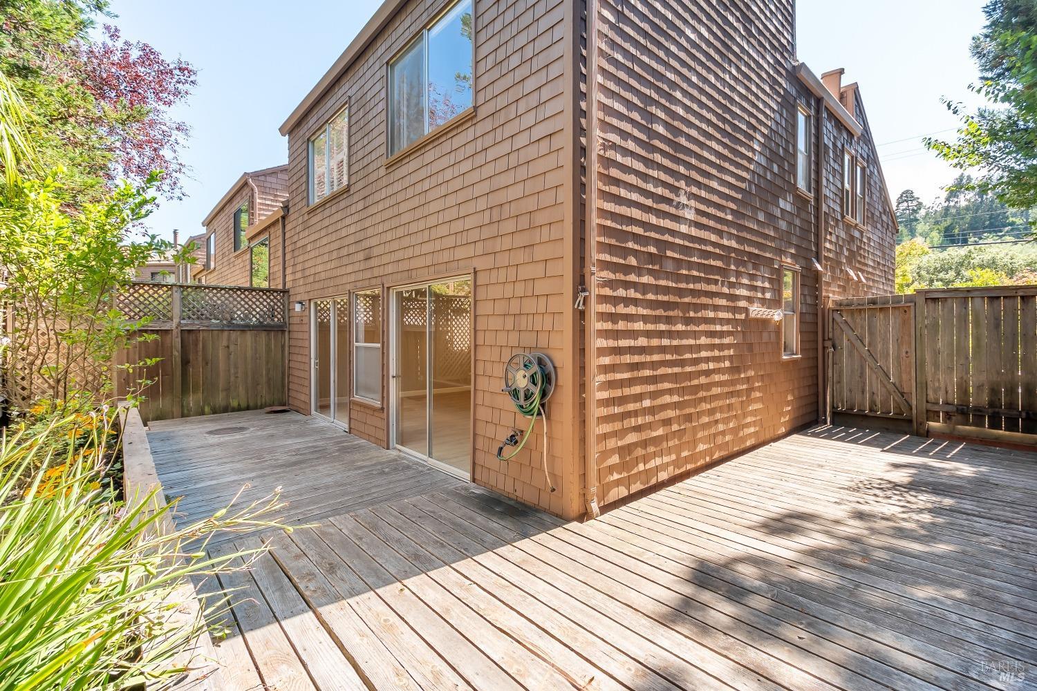 Move-In Ready Townhouse in Mill Valley - Perfect for Fall and the Holidays! Discover an amazing opportunity in the heart of Mill Valley with this spacious 3-bedroom, 2.5-bathroom end-unit townhouse. Nestled in a small, quiet complex, this home offers the feel of a single-family residence. Featuring three generously sized bedrooms, each with high ceilings and plantation shutters, as well as a recently updated kitchen, fresh paint, and new flooring throughout, it's ready for you to move right in. The open living and dining areas flow effortlessly out to a large private patio, perfect for indoor-outdoor living and entertaining. Cozy up by the fireplace in the living room or enjoy the common grounds just beyond your patio, complete with landscaped yards. Additional highlights include a spacious storage room inside the unit, an attached garage, and an assigned parking space. Situated in desirable Tam Valley, this home offers a perfect blend of charm and convenience. Enjoy a sunny neighborhood with easy access to top-rated Tam Valley schools, local shops, restaurants like Good Earth Market, Proof Lab, & Equator Coffee. Outdoor enthusiasts will love being close to world-class hiking & biking trails, Tennessee Valley, Muir Beach, and Stinson Beach.